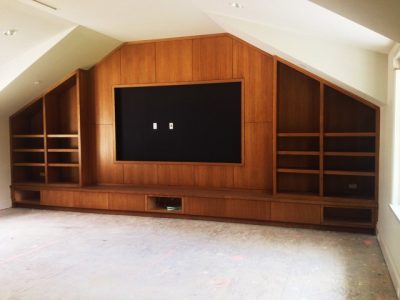 A large part of my work involves providing custom entertainment centers. These have to be designed to not only fit the space limitations, but also the equipment and preferences of the client. This includes special wiring, media servers, flat screens, audio components, etc.